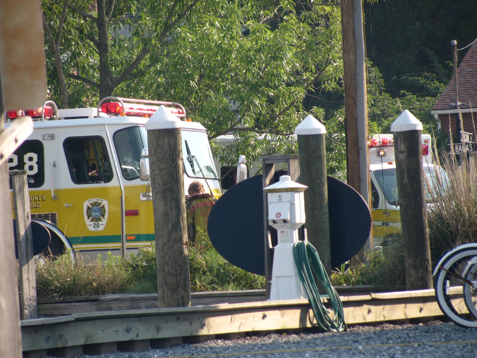 Our first night at the marina, we had a little excitement. There were sirens going off in the town, which turned out to be the siren that summons the volunteer fire dept. And lo and behold the fire trucks came to the marina. Turns out in the office they had some flea bombs that went off and set off the smoke detectors.